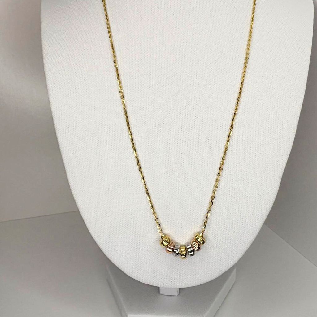 La Cadena Boston con Dije de Tres Oros 14kt – 18 pulgadas es una joya que destaca por su estilo único y su elegante combinación de colores. Su diseño Boston ofrece un brillo profundo y texturizado, mientras que el dije mezcla armoniosamente oro amarillo, oro blanco y oro rosado, creando un look moderno y versátil.