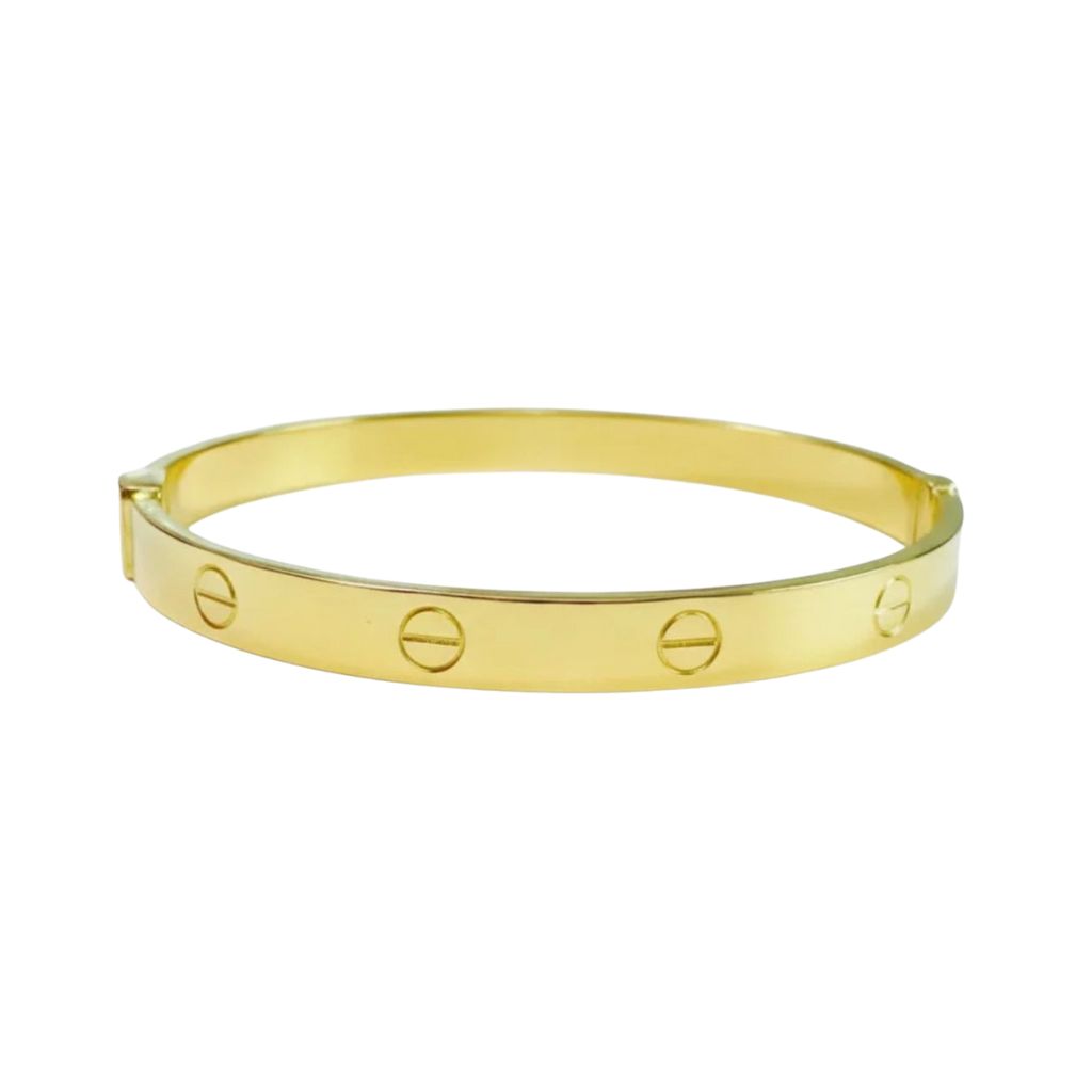 Pulsera de Oro 10k Semisólida con Cierre de Muelle, una pulsera semisólida de oro 10k con diseño elegante, grosor de 5.7 mm y cierre de muelle para máxima seguridad y comodidad.